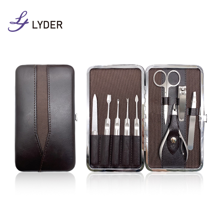 BROWN SQUARE STAINLESS STEEL MANICURE SET